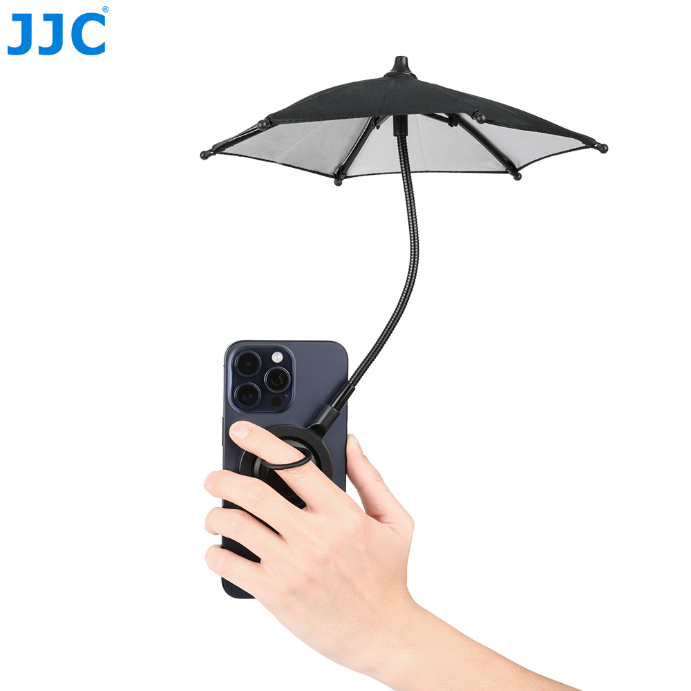 360°の回転と90°下向きチルトに対応し、傘の角度を簡単に調整し、スマホの全方向を遮ます。