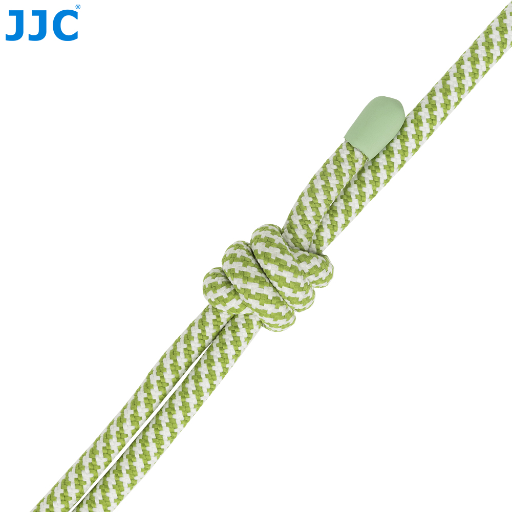 付き結び目のデザインでストラップの長さ調節が可能です。